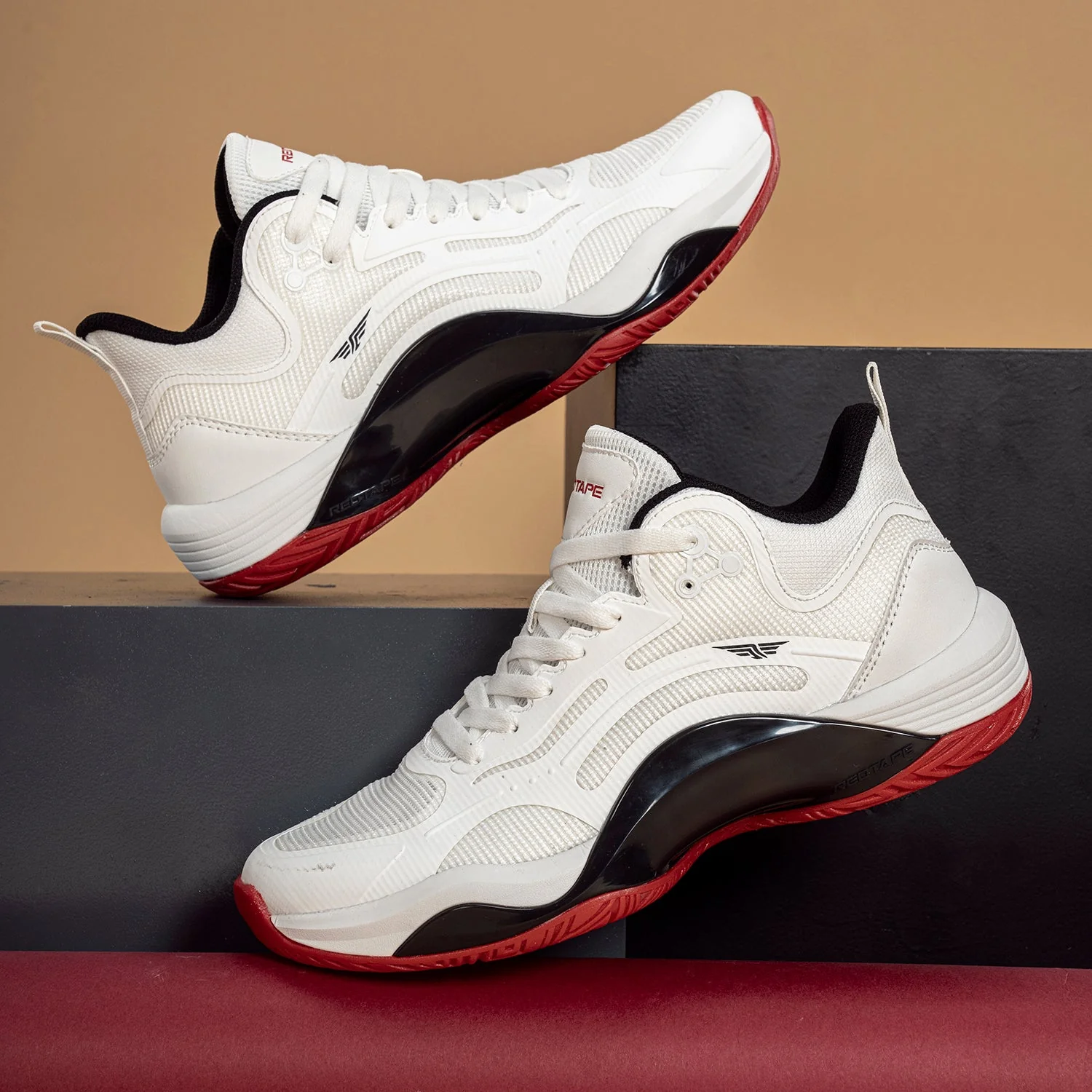 Upgrade your footwear collection with these stylish white sports sneakers, designed for both performance and everyday fashion. The clean white upper combined with a bold black midsole and red outsole creates a modern athletic look that stands out anywhere — gym, street, or casual outings.